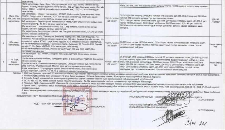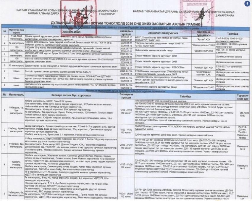 Энэ хугацаанд дулааны шугамыг шинэчлэх, засварлах, өргөтгөх ажлыг гүйцэтгэхээр төлөвлөжээ. Шугамын засвар, шинэчлэлийн ажлын үргэлжлэх хугацаа 10-20 хоног байна.